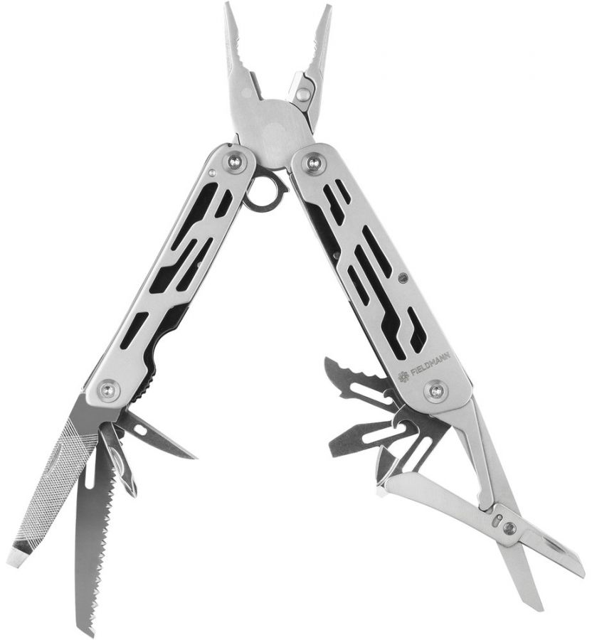 Robustní kombinované kleště s 15 různými nástroji v jednom, které kromě standardních vlastností umožňují i odstranění izolace z kabelů. Dále můžete využívat nůžky, nůž na lepenku a provaz, vytahovák hřebíků a spon, pilku, pilník, otvíráky, šroubováky, pravítko a nebo praktický křížový šroubovák. Všechny nástroje jsou jištěny bezpečnostní pojistkou.