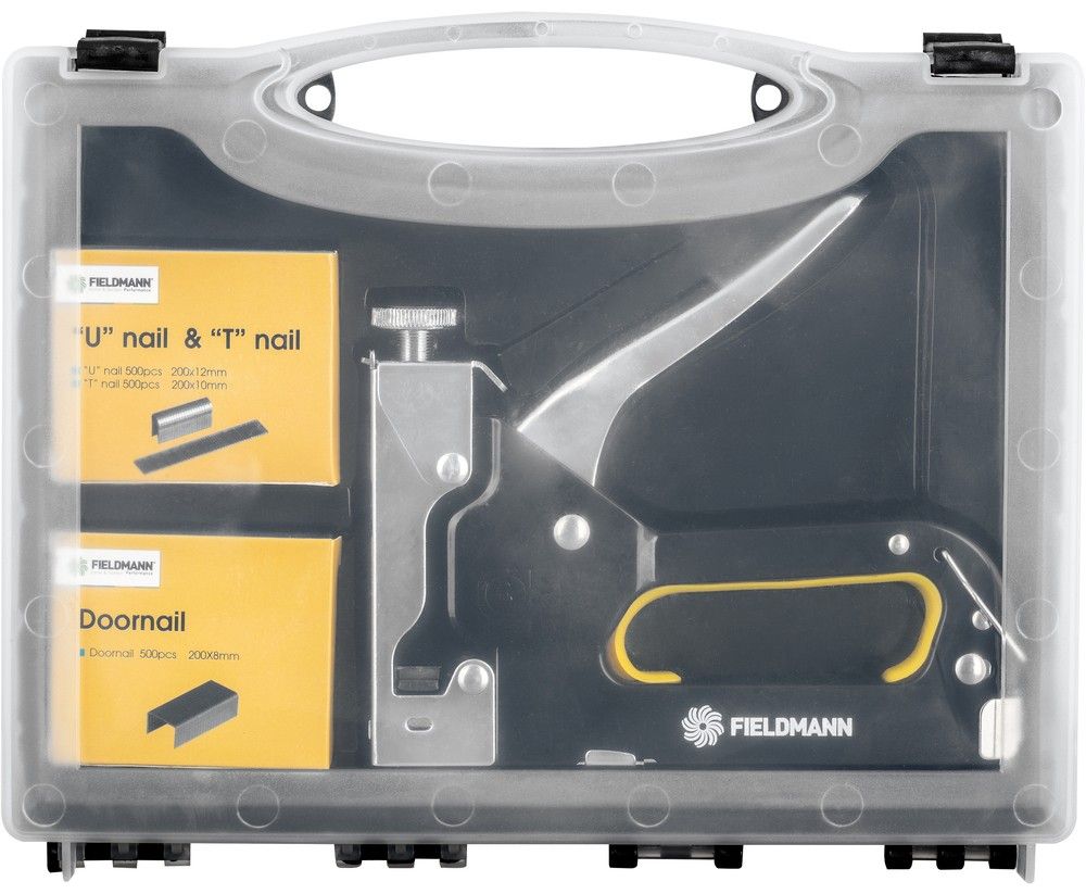 Potřebujete upevnit krycí plachtu, přišít textilní potah na dřevěnou konstrukci nábytku nebo sešít kartonové krabice? Bez sponkovačky se neobejdete. Zkuste třeba naší víceúčelovou sponkovací pistoli FIELDMANN FDN 3001, která si poradí s kterýmkoliv druhem sponek pro Vaši práci v dílně. Součástí balení je kromě sponkovačky, též praktický plastový kufřík s třemi druhy náhradních sponek v dostatečném množství (1500ks). Sponkovačka je určena pro oblé a obdélníkové spony a hřebíky.
