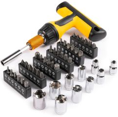 Sada šroubováku s bity obsahuje 36 ks 25 mm bitů, 10 ks bity 4-13mm, magnetickou prodlužovací tyč a T-šroubovák.