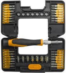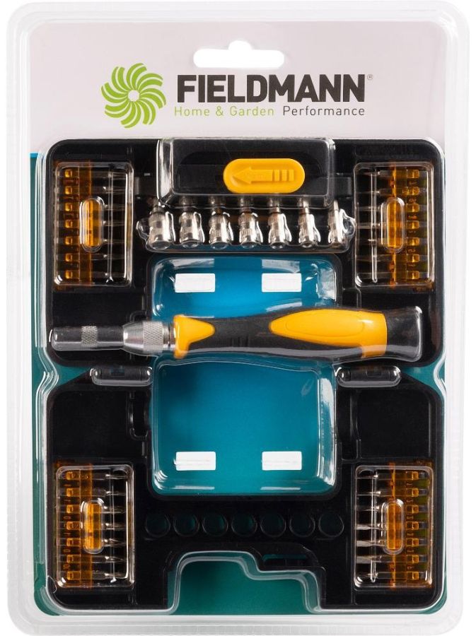 Sada šroubováku a precizních bitů FIELDMANN je vytvořena z chrom-vanadiové oceli (CrV) s vylepšenou odolností proti deformaci, což zajišťuje maximální utahovací moment při šroubování nebo montáži. Hroty s pevnou stabilitou zajistí spolehlivý přenos momentu a rychlé upevnění. Pohodlný a pevný úchop při práci je zajištěn ergonomickou rukojetí. Celá sada je uložena v praktickém a přehledném boxu.