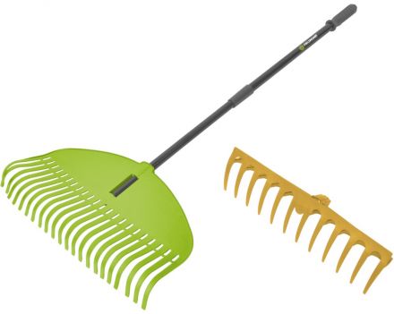 - 1x hrábě na listí: 23 zubů, 48 x 26 cm