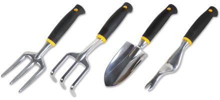 Sada zahradnického náčiní Fieldmann FZNR 1104 patří doslova k základnímu vybavení, ať už máte velkou zahradu nebo jen truhlíky na balkoně. Pracovní část nástrojů je vyrobena z hliníku, který náčiní dodává pevnost a zároveň odolnost proti korozi. Nevadí mu tak ani práce s mokrou zeminou. Další velkou výhodou hliníkového provedení je lehkost, díky které je možné déle pracovat bez únavy. Rukojeť každého nástroje je opatřena měkčeným tvarovaným povrchem, takže se pevně a pohodlně drží v ruce, navíc nestudí. Zavěšení umožňuje otvor v rukojeti.