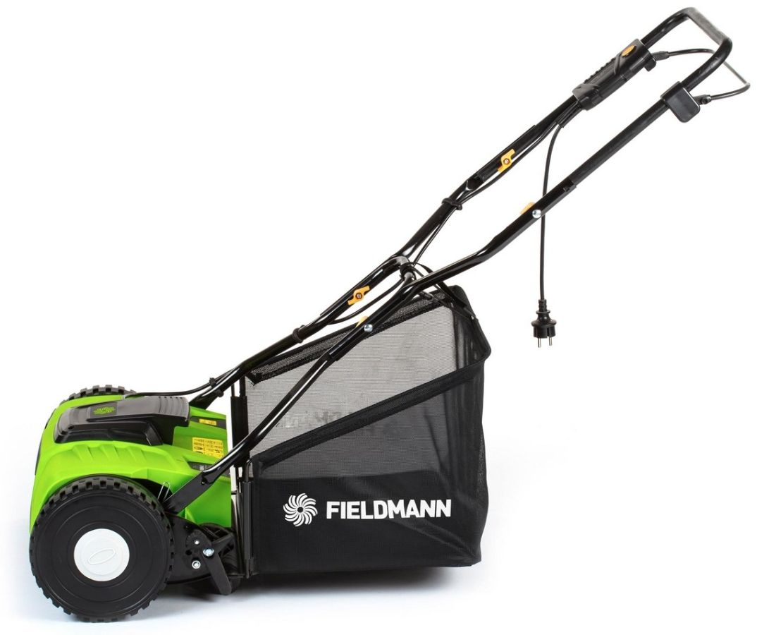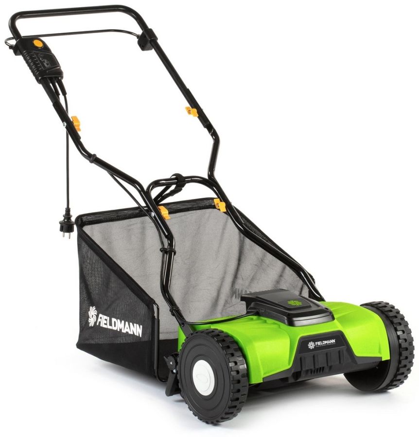 Elektrická vřetenová sekačka Fieldmann FZR 1050 má záběr sečení 38 cm a je vhodná k pravidelné údržbě travních ploch až do cca 300 m², jako jsou předzahrádky či dvorky, kde navíc oceníte tichý provoz. Výšku sečení lze nastavit do čtyř pozic v rozmezí od 13 do 38 mm, posekaná tráva je zachytávána do látkového koše (objem 45 l).