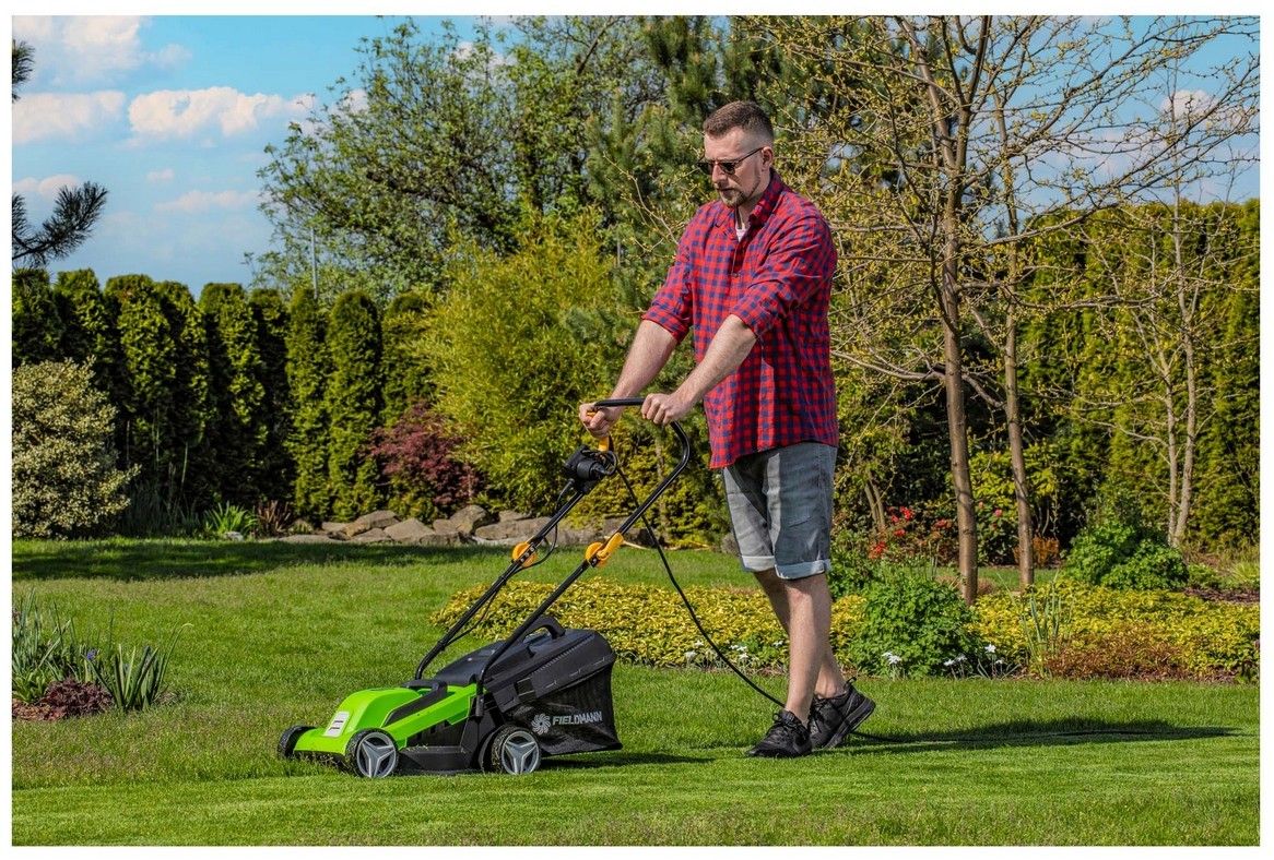 Fieldmann FZR 2028-E je lehká a snadno ovladatelná elektrická sekačka s elektromotorem o příkonu 1300 W a se záběrem 32 cm. Šasi této sekačky (laicky řečeno prostor, kde se točí nůž) přesahuje, stejně jako u ostatních modelů Fieldmann, šířku koleček, takže trávu dosekáte opravdu až ke kraji, např. podél zdi.