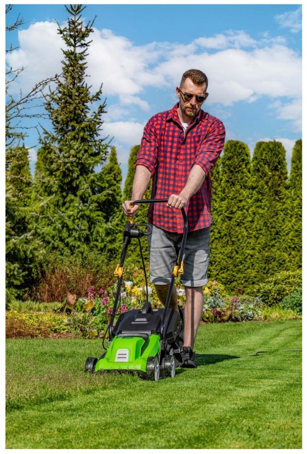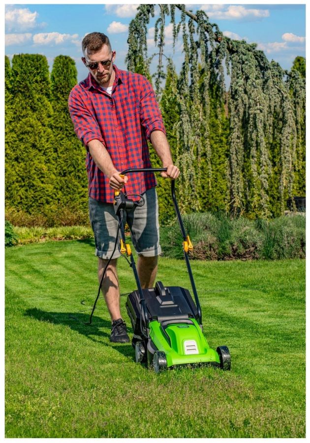 Elektrická sekačka 1300 W je lehká a snadno ovladatelná. Poseče plochu o rozloze 600 m2.