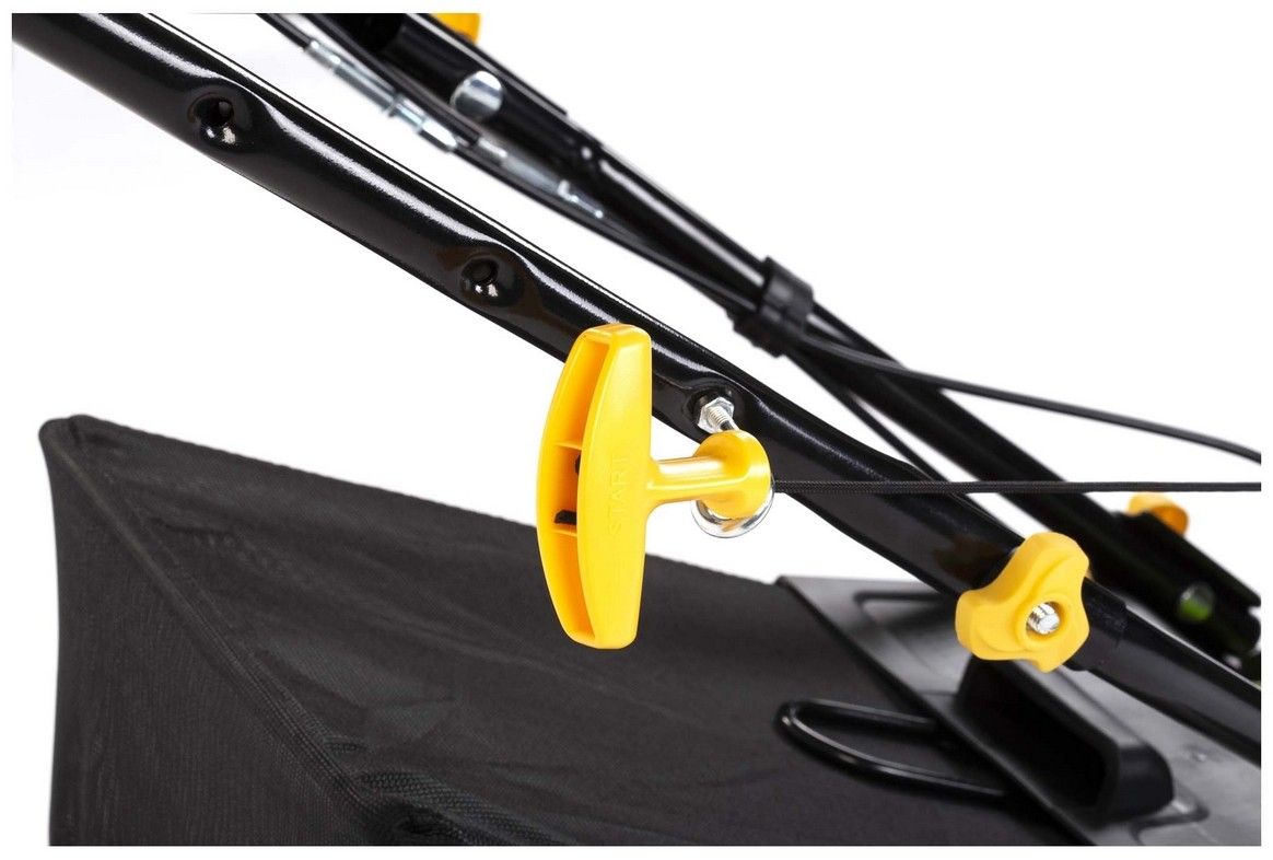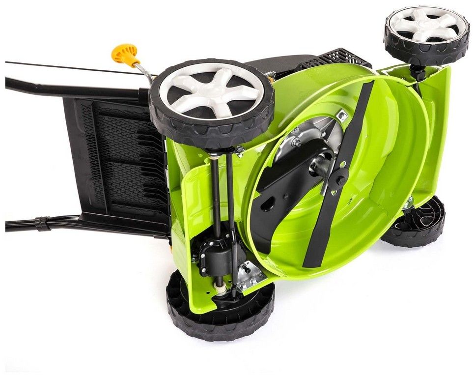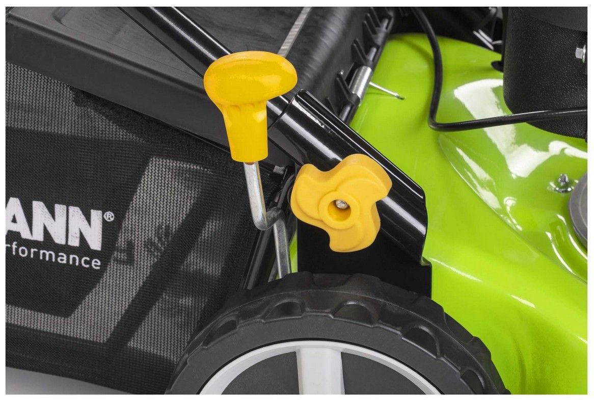 Můžete si vybrat ze 7 variant v rozmezí 25–75 mm. Sběrný koš o objemu 45 l zajistí, že nebudete muset každých pár metrů zastavovat a koš vynášet. Naše sekačka je také navržena s ohledem na vaše pohodlí. Díky její ergonomické rukojeti a funkci pojezdu se stává sekání hračkou. Madlo je dokonce možné zcela sklopit, aby se lépe skladovala nebo převážela v autě. Odolná konstrukce a šasi z oceli jsou zárukou, že vám sekačka vydrží dlouhá léta.