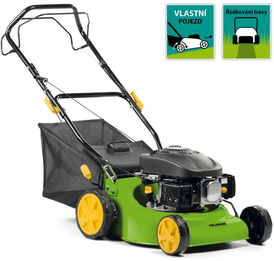 Cenově dostupná benzínová sekačka s pojezdem. Pohon nože i pojezd stroje je zajištěn 4 taktním motorem o obsahu 99 cm3 s ventilovým rozvodem OHV. Šasi sekačky je vyrobeno z oceli. Centrální nastavení výšky sečení nabízí 10 pozic v rozsahu 25–75 mm. Madlo sekačky, lze snadno sklopit pouhým odjištěným rychloupínacích šroubů. Látkový koš zabraňuje prostupu prachu, kola jsou uložena na kuličkových ložiscích.
