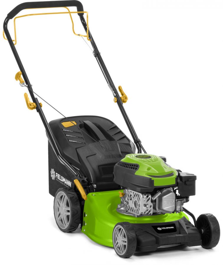 Benzínová rotační sekačka se 6-ti pozicemi sečení, ocelové šasi. Poseče plochu o rozloze 800 m2.