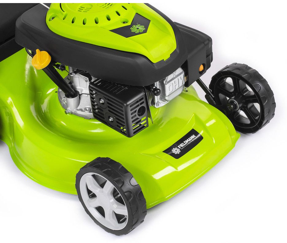 Robustní benzínová sekačka Fieldmann FZR 4608-B s vlastním pojezdem má výkonný čtyřtaktní motor OHV (139 cm3/2,2 kW), s nímž lze pohodlně posekat i hustší nebo delší trávník o velikosti až 1000 m². Stroj má odolné ocelové šasi. Výška sečení se provádí centrálně jednou páčkou do 5 různých pozic (25 - 75 mm), záběr nože je 46 cm.
