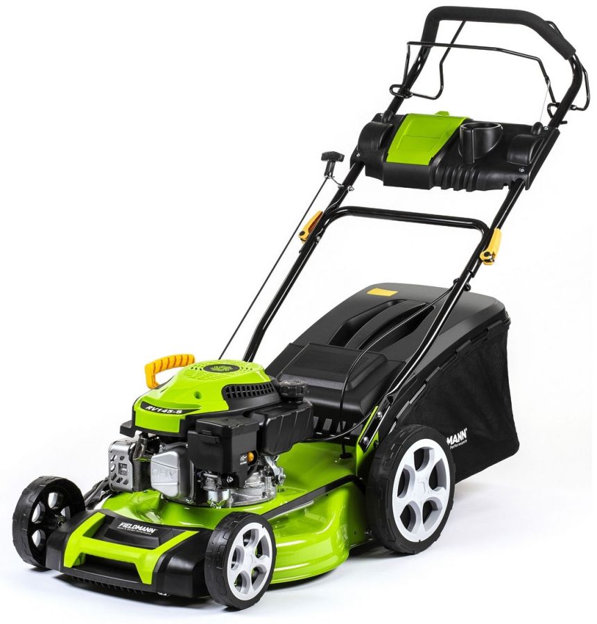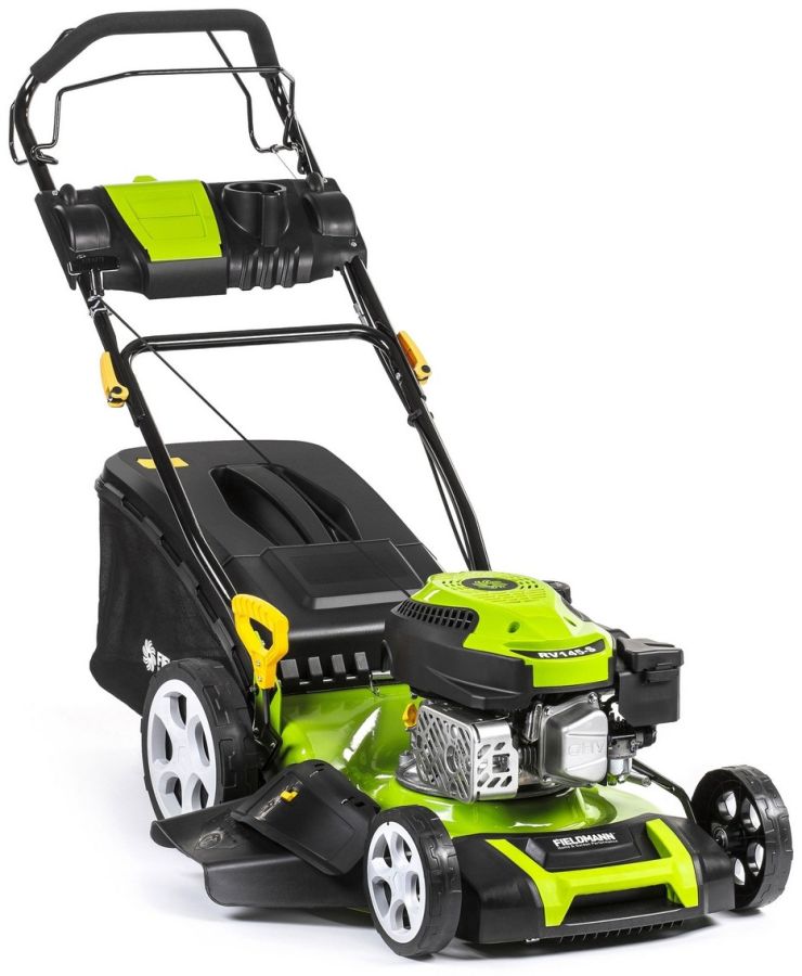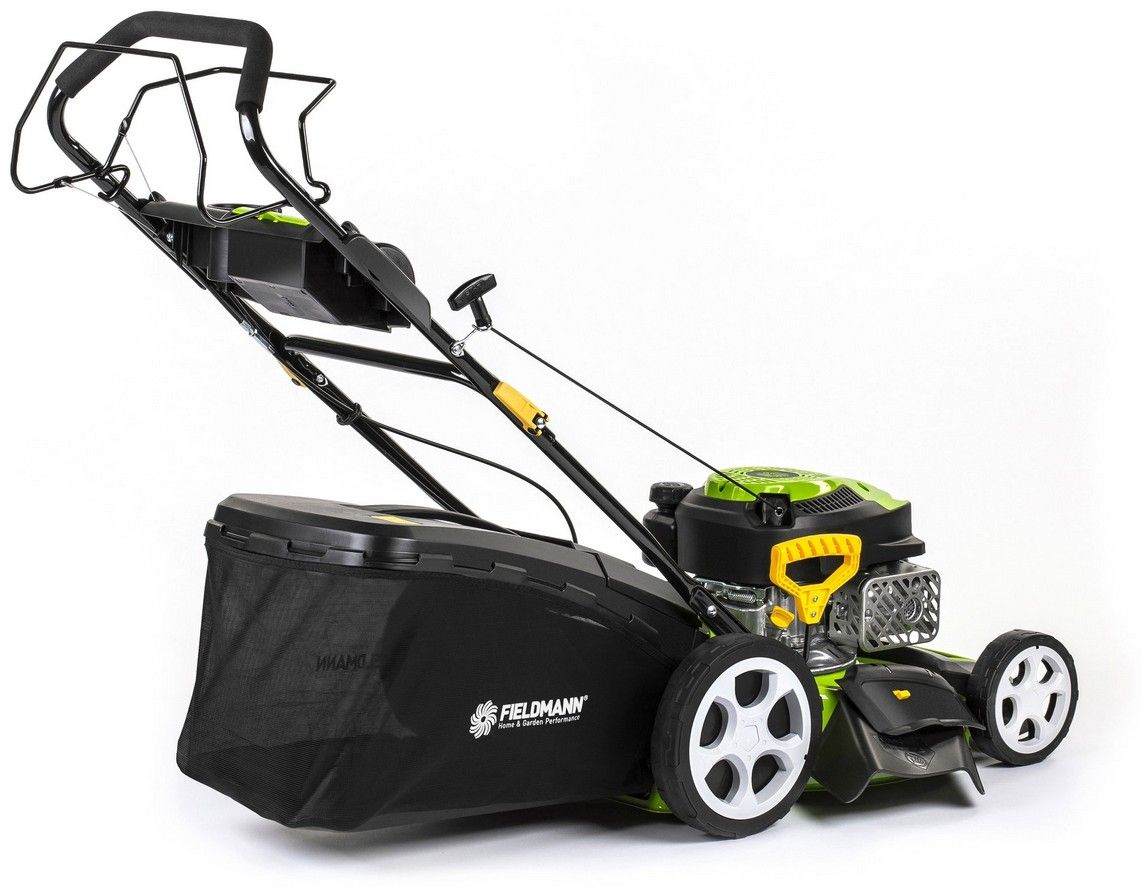 Při pořizování sekačky na větší zahradu se už vyplatí investovat do lepšího stroje. Benzínová rotační sekačka FIELDMANN FZR 4616-144b je skvělou volbou pro trávníky do velikosti 1 000 m². Přístroj je poháněn motorem OHV RATO SV 145-S s výkonem 2,5 kW a šířka záběru je 46 cm, práce vám tak půjde rychle od ruky. Podle vašich preferencí a potřeb trávníku si můžete pomocí centrální páky nastavit výšku sečení až na 8 různých pozic v rozsahu 25–75 mm. Velký sběrný koš o obsahu 65 l je vybavený ukazatelem zaplnění a upozorní vás, kdy je zapotřebí nádobu vyprázdnit. To však není jediná možnost, jak naložit s posekanou trávou.