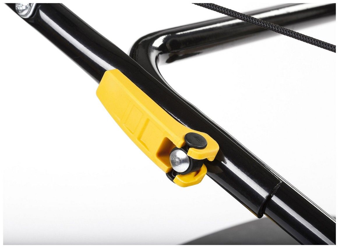 Díky nastavení 4v1 si můžete vybrat, zda chcete využít sběrné nádoby, využijete boční nebo zadní odhoz či zvolíte variantu mulčování. Kvůli ocelovému šasi je celková váha 26 kg, ale funkce pojezdu a kvalitní kolečka zajistí, že si toho ani nevšimnete. Sklopné madlo pro snadnější skladování je už velice často standardem pro příjemný uživatelský komfort. U tohoto stroje to výrobci posunuli ještě o kousek dál, a navíc vybavili sekačku držákem na nápoje i šikovnou přihrádkou.