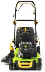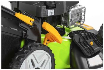 Benzínová sekačka 4v1 osazená prvotřídním motorem Briggs & Stratton 675 EXi, ocelové šasi, systém 4v1, výška sečení 30 – 70 mm a madlo nastavitelné ve 3 polohách.