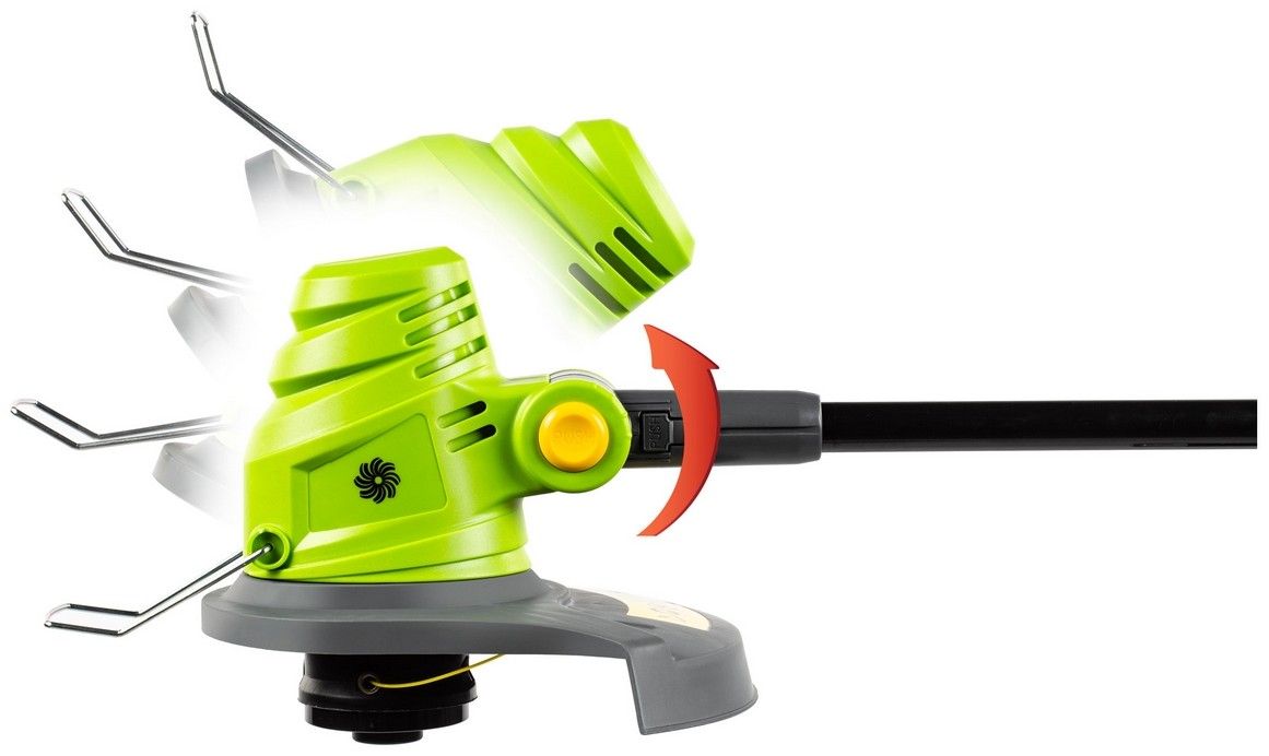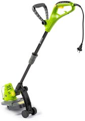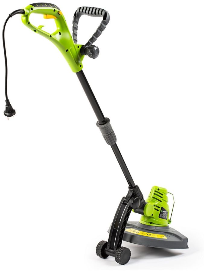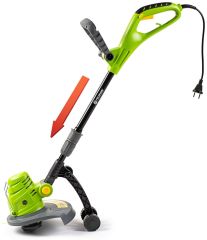 Výkonnější strunová sekačka s elektromotorem o příkonu 500 W. Žací hlava je osazena dvěma strunami, díky nimž dosahuje záběru sečení 300 mm.