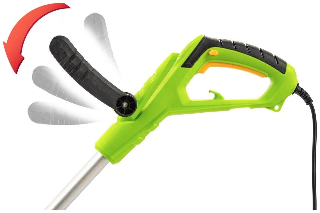 Strunová sekačka FIELDMANN FZS 2505-E s šířkou záběru 30 cm je vybavena elektromotorem o příkonu 550 W, který pohání žací hlavu se dvěma strunami. Sekačka disponuje teleskopickou rukojetí s možností nastavení délky v rozmezí 105 až 125 cm. Nastavitelný je rovněž úhel žací hlavy, což ještě zvyšuje obratnost stroje v nerovném terénu a špatně dostupných místech. Pohodlí při použití zajišťuje nízká hmotnost (2,3 kg), vodicí kolečko usnadňuje sečení podél zdí a před poškozením chrání rostliny, které nemají být posečeny. Bezpečnou manipulaci se sekačkou zajišťuje protiskluzová úprava rukojeti a pojistka spínače.