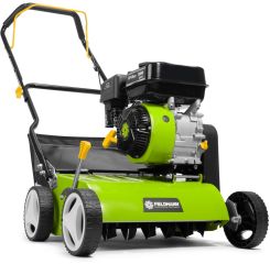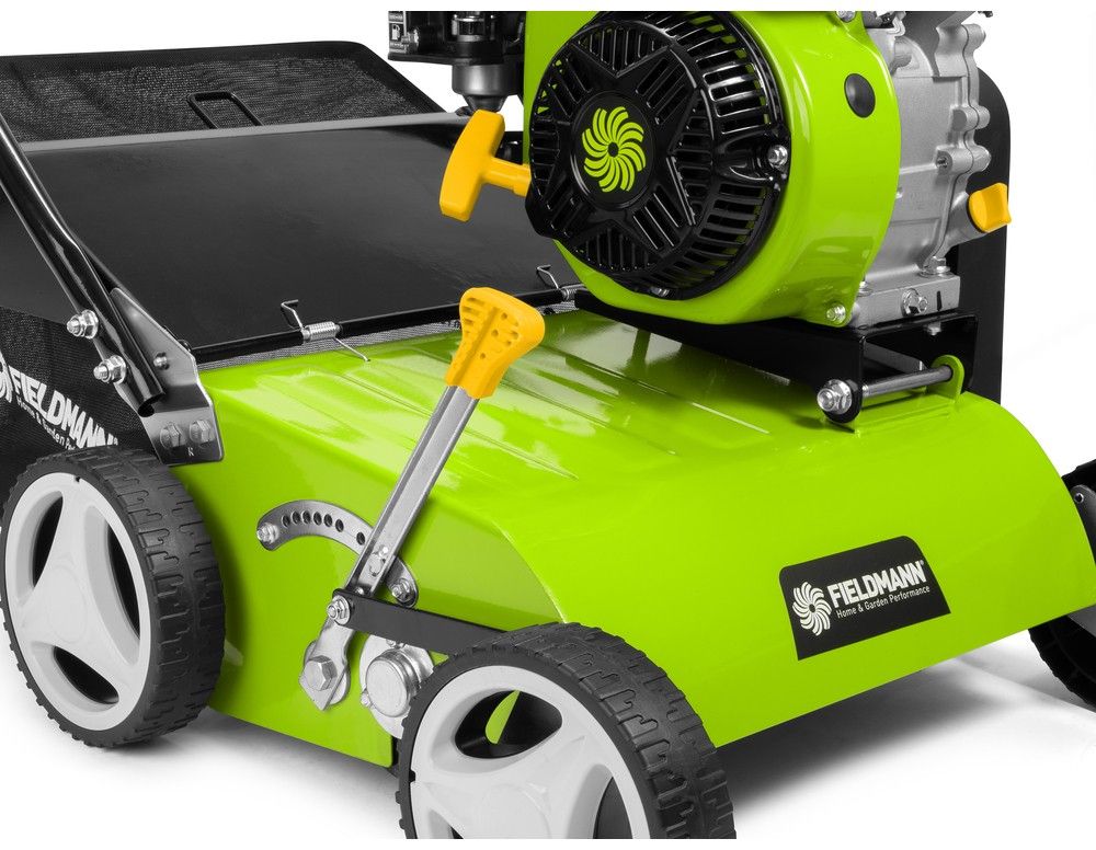 Rozsáhlé trávníky, až 2000 m2, prořeže i pročeše benzínový vertikutátor Fieldmann FZV 6050-B s motorem OHV 212 cm3 / 4,3 kW. Stroj s odolným ocelovým šasi je vybaven pracovním válcem s 36 noži pro provzdušňování a vertikutaci půdy, válec s pružinami lze dokoupit dodatečně. Pracovní hloubku je možné centrálně nastavit do 8 různých úrovní podle opotřebení nožů (-15 až +5 mm). Pracovní záběr stroje je 40 cm. Látkový sběrný koš redukující prostupnost prachu pojme až 35 litrů travní plsti a mechu. Kola jsou uložena na kuličkových ložiscích, sklopné madlo usnadní skladování stroje.