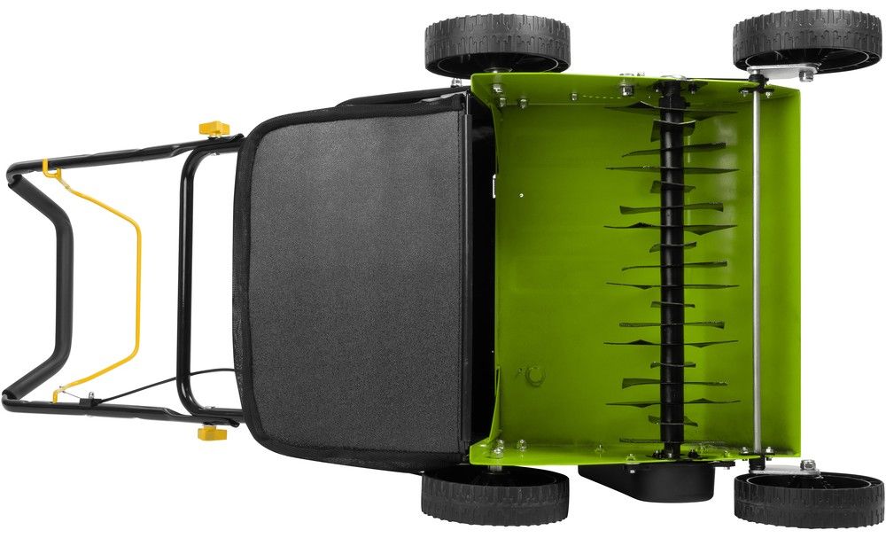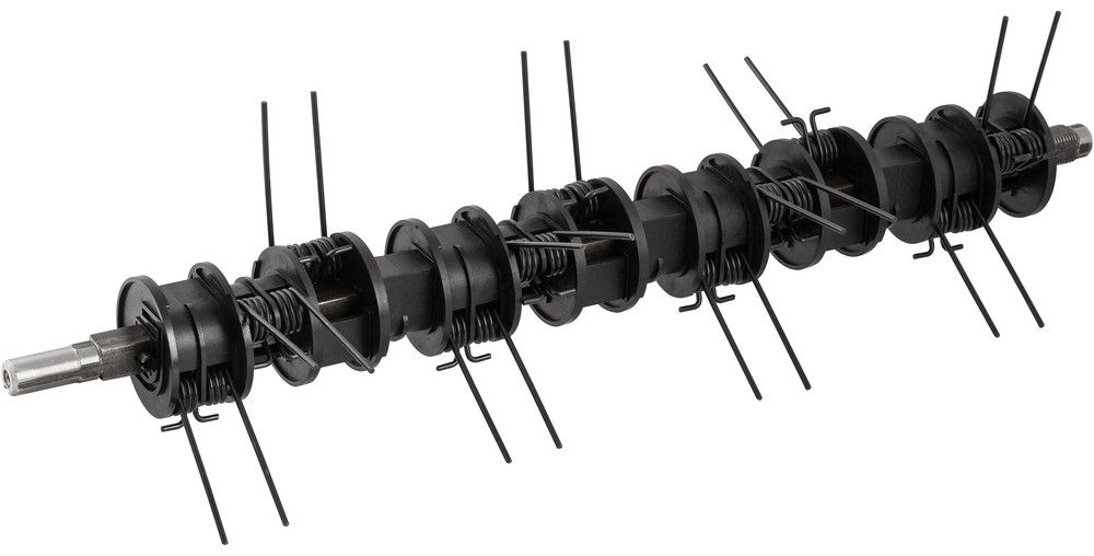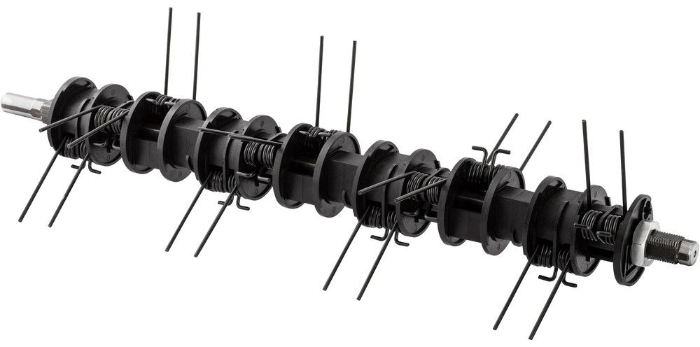 Válec s pružinami /lze dokoupit/ - Pružiny efektivně odstraní travní plsť, která vzniká ze zbytků posečené trávy a také mulčováním. Odstranění travní plsti trávník provzdušní a zabraňuje šíření plevelů a mechu.