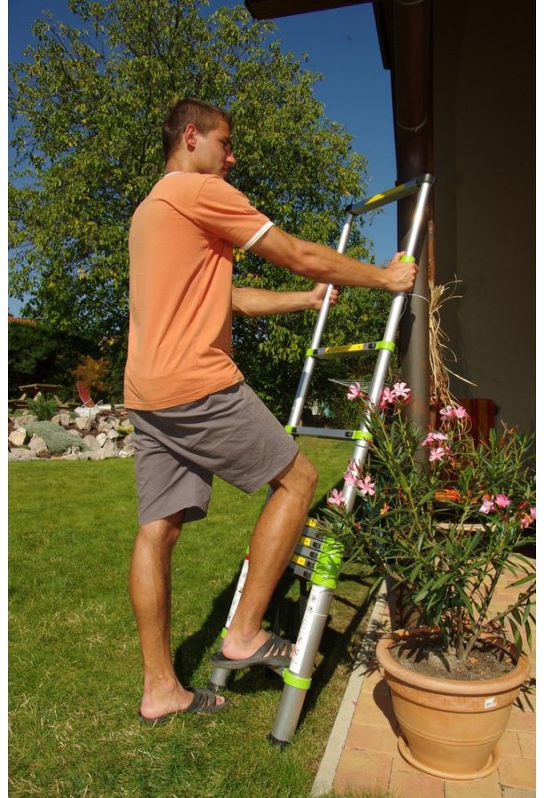 Teleskopický žebřík 2,6 m je díky unikátnímu teleskopickému systému velmi oblíbený u většiny řemeslníků, opravářů i majitelů domů a zahrad.