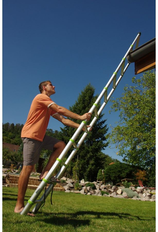 Teleskopický žebřík 3,8 m je díky unikátnímu teleskopickému systému velmi oblíbený u většiny řemeslníků, opravářů i majitelů domů a zahrad.