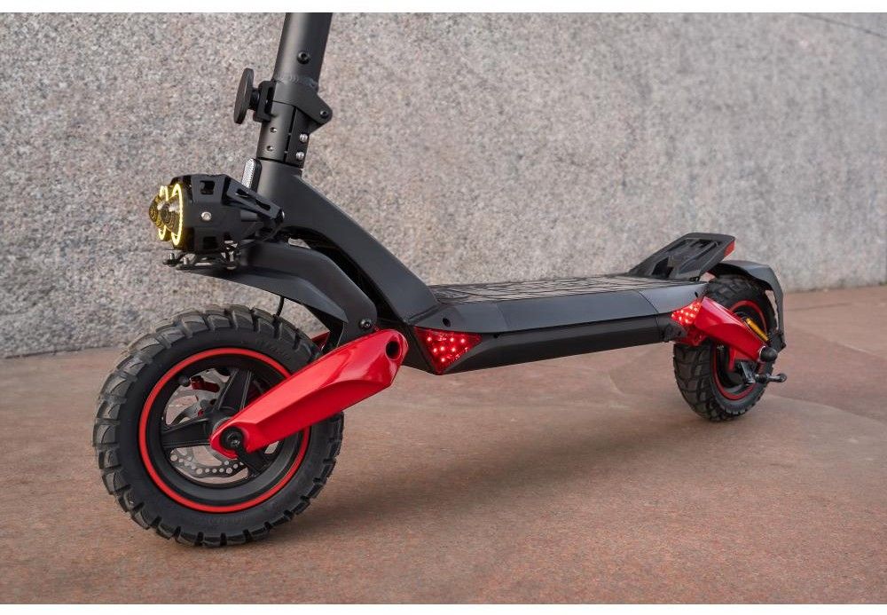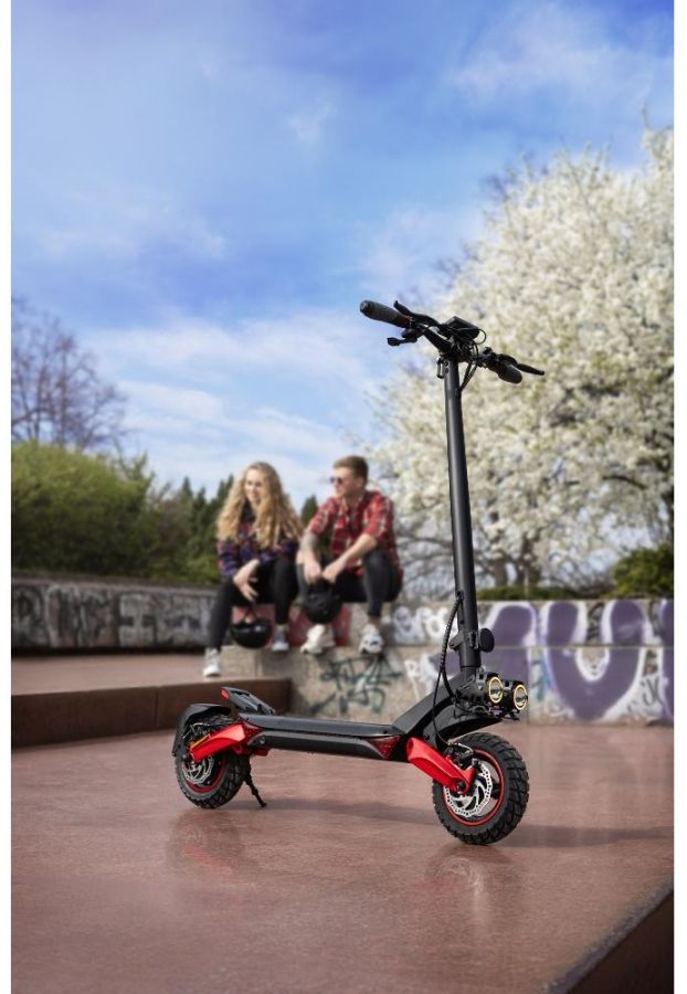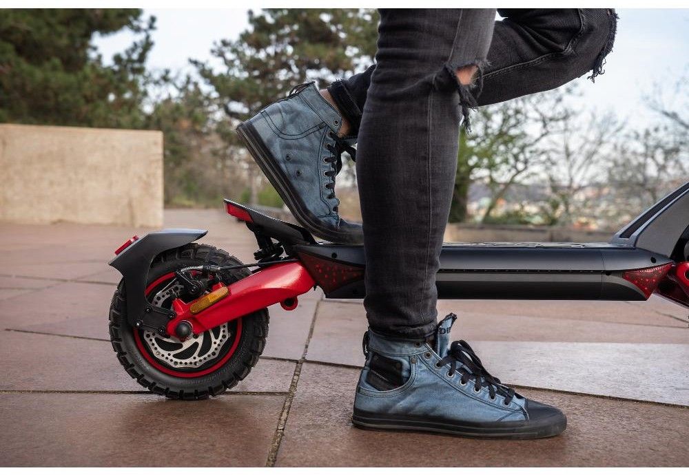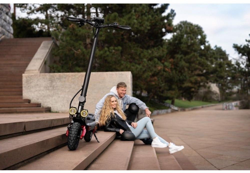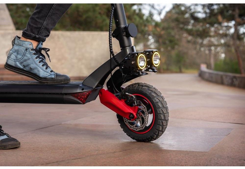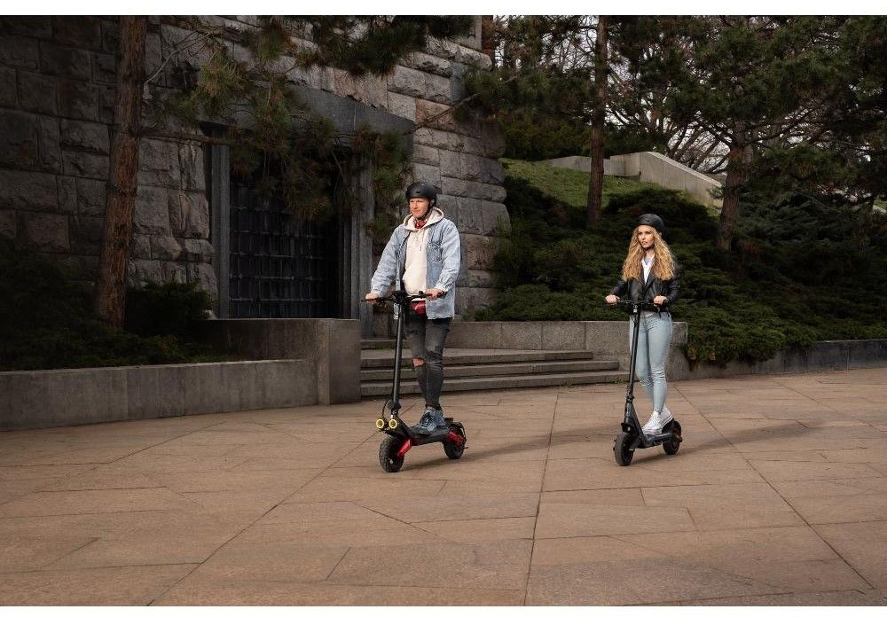 O Váš komfort se postarají 10" bezdušové pneumatiky se vzorkem do terénu a s vlastnostmi pro dobré tlumení. Díky gelu pro zacelení defektu v pneumatice se nemusíte bát této nepříjemné situace, kvůli kterému by Vaše jízda mohla brzy skončit. Kyvné odpružení obou kol udělá Vaši jízdu naprosto dokonalou. Pro zvýšenou bezpečnost je koloběžka vybavena duálním brzdovým systémem – elektrickým pomocí motoru a mechanickým skrze kotoučové brzdy.