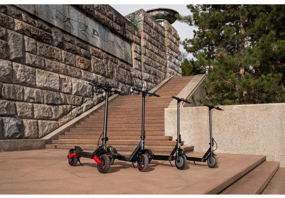 Elektrická skládací koloběžka s výkonem 800W a rychlostí až 25 km/h, nosností 120kg a dojezdem až 65 km.