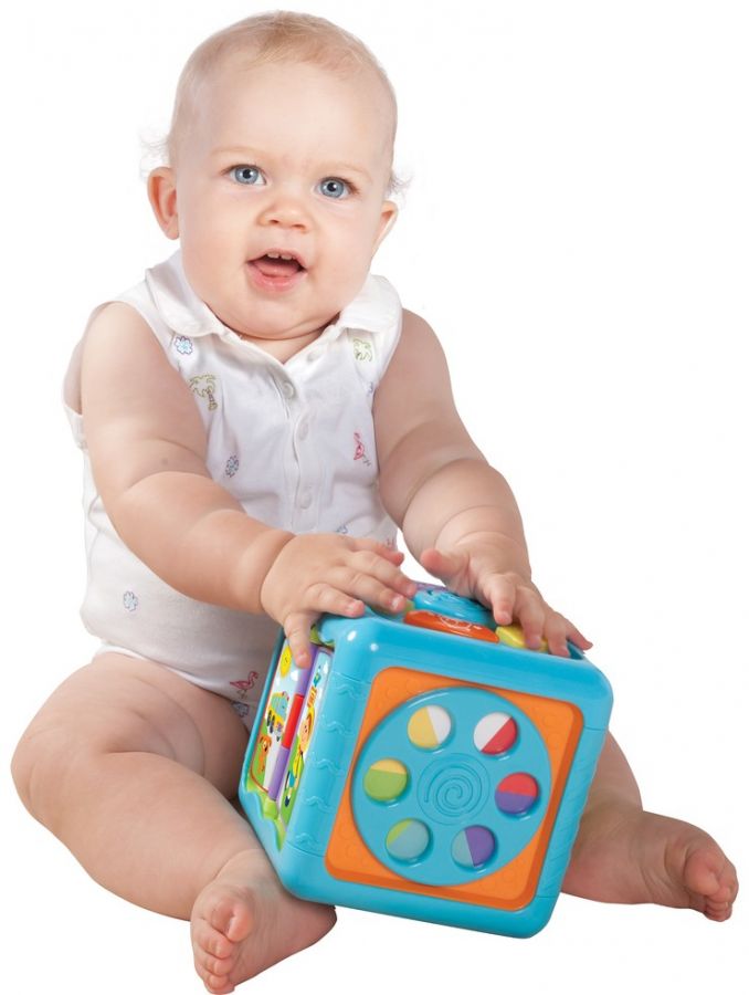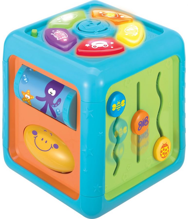 Učte a smějte se společně s vaším dítětem a touto interaktivní kostkou. Kostka v pestrobarevných barvách vydává různé poutavé zvuky a melodie. Má různé funkce podporující rozvoj motorických dovedností.