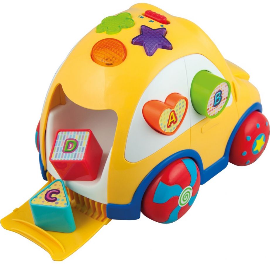 Smějte se společně s vaším dítětem a touto interaktivní vkládačkou. Auto v pestrobarevných barvách vydává různé poutavé zvuky, melodie a bliká. Děti mohou tvary vkládat, vysypávat ven a stále tak zlepšovat své znalosti tvarů a barev! Aktivita třídění tvarů podporuje fantazii a rozvoj dovedností vašeho dítěte.