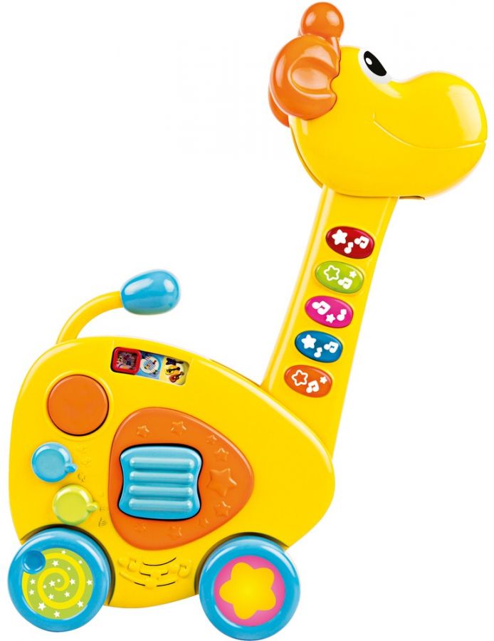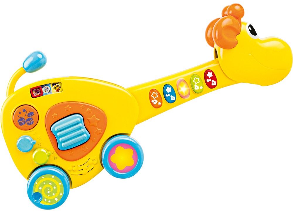Děti milují hračky, které se proměňují a mají více podob. Dětská kytara, která má tři režimy od spontánního hraní přes hraní podle melodií až po hotové písničky, DJ mixážní pult s bláznivými zvukovými efekty, vibrační pákou a tlačítkem brnkání má tu obrovskou výhodu, že se velmi snadno promění v žirafu, kterou děti mohou za sebou tahat, a jejich nový kamarád přitom vydává legrační zvuky.