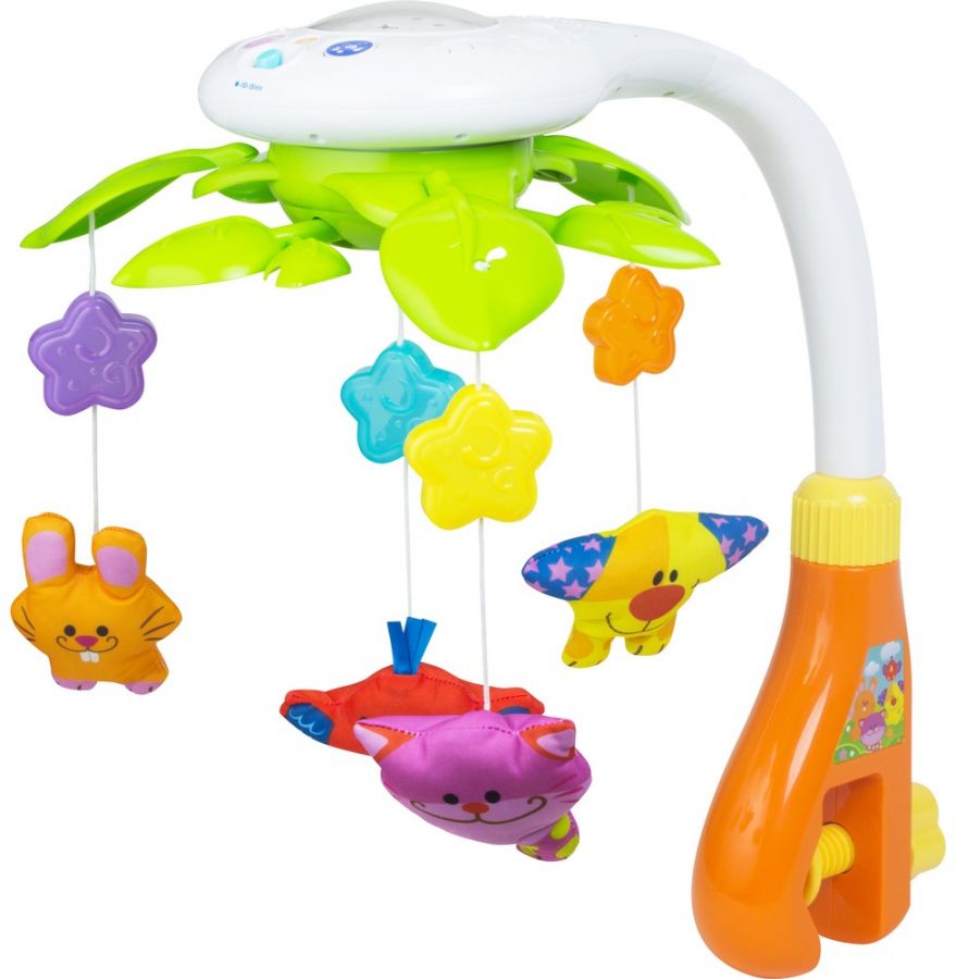 Hudební kolotoč s promítáním na strop dětského pokojíčku. Uklidňující ukolébavky nebo zvuky přírody pomáhají vašemu děťátku hladce usnout. Hudbu, otáčení a projektor se čtyřmi barevnými módy můžete používat samostatně.