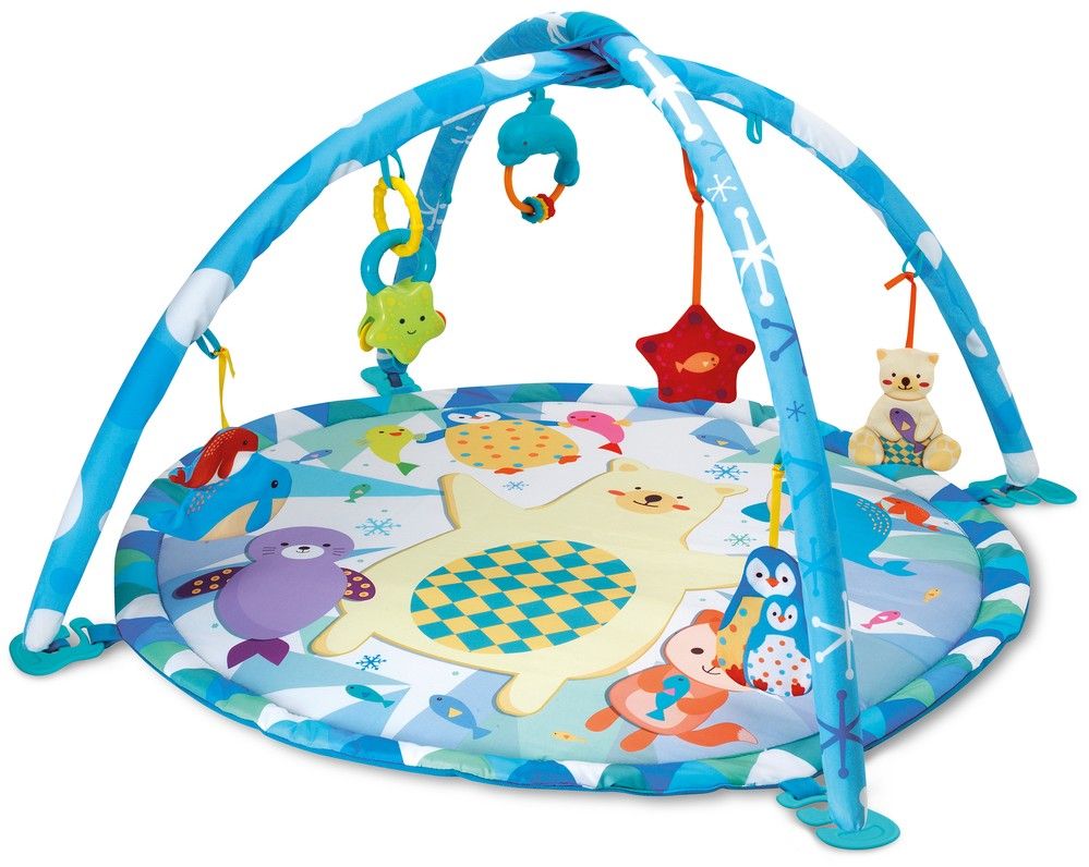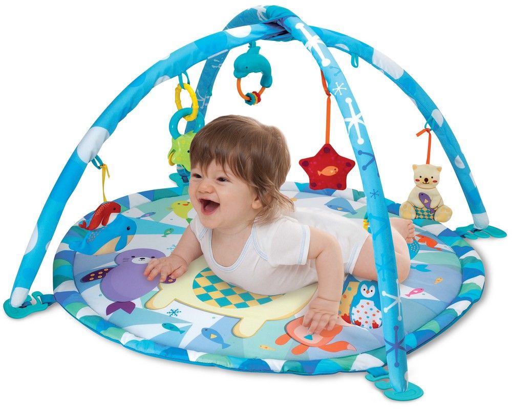 - Dodává se s přemístitelnými závěsnými hračkami.