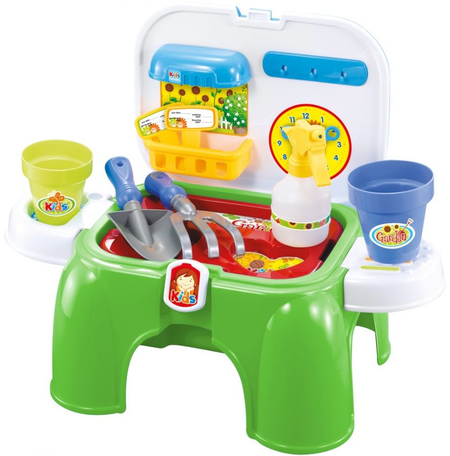 Dětský zahradní set v přenosném kufříku, který lze použít i jako stoličku, pro děti od 3 let.