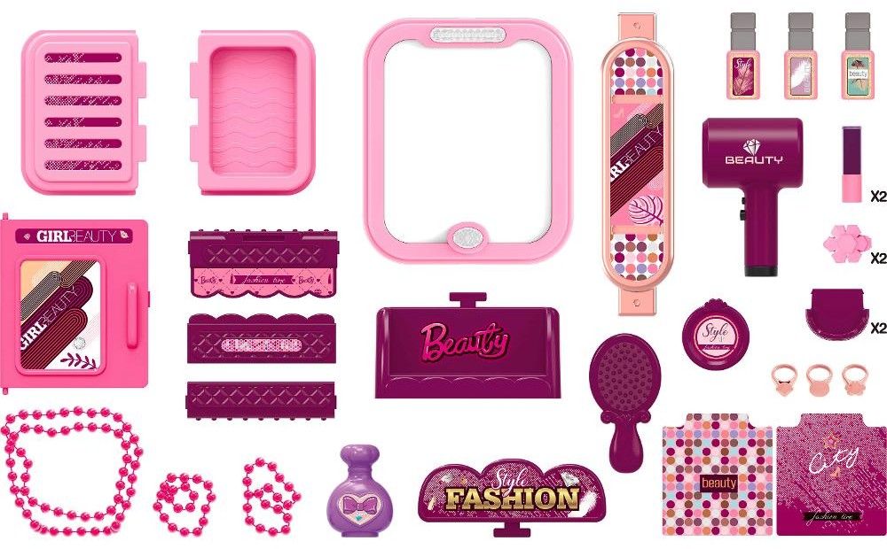 - Kosmetický salón v kufříku obsahuje vše, co malé parádnice potřebují – 21 kusů doplňků, se kterými si vyhrají. Všechny součásti jsou navrženy tak, aby se dětem dobře držely a byly bezpečné.