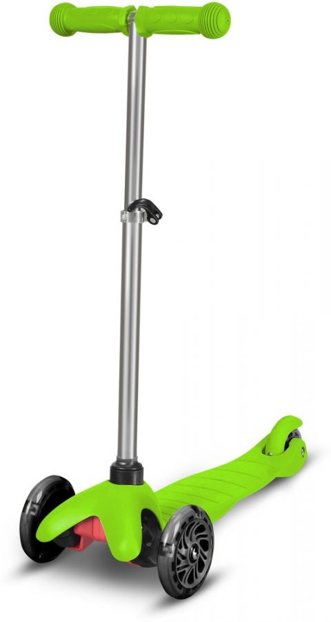 Se třemi svítícími LED kolečky pro snadnou, bezpečnou a stabilní jízdu menších dětí. Na zadním kolečku má bezpečnostní brzdu. Řídítka mají pohodlná gumová madla, aby se dětem dobře držela. Zatáčí se pomocí naklápění, to pomáhá učit rovnováhu a koordinaci.