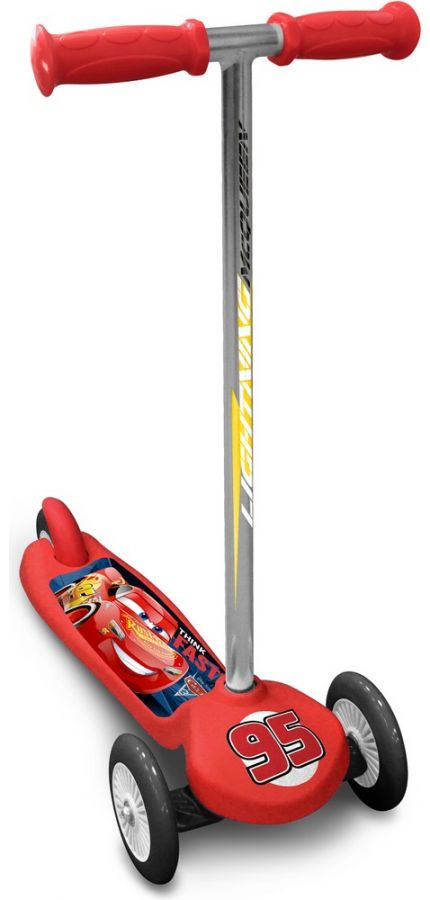 Dětská naklápěcí koloběžka s licencí filmu Auta 3. Zatáčí se pomocí naklápění, to pomáhá učit rovnováhu a koordinaci. Tři kolečka jsou zárukou snadné, stabilní a bezpečné jízdy menších děti. Blatník v zadní části koloběžky slouží i jako brzda. Výška řídítek 63 cm, váha 1,83 kg, nosnost 20 kg, plastová kolečka s ložisky ABEC 5.