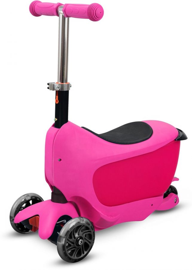 Se třemi svítícími LED kolečky pro snadnou, bezpečnou a stabilní jízdu menších dětí. Jednoduše lze přestavět z koloběžky na odrážedlo. Na zadním kolečku má bezpečnostní brzdu. Řídítka mají pohodlná gumová madla, aby se dětem dobře držela. Zatáčí se pomocí naklápění, to pomáhá učit rovnováhu a koordinaci.