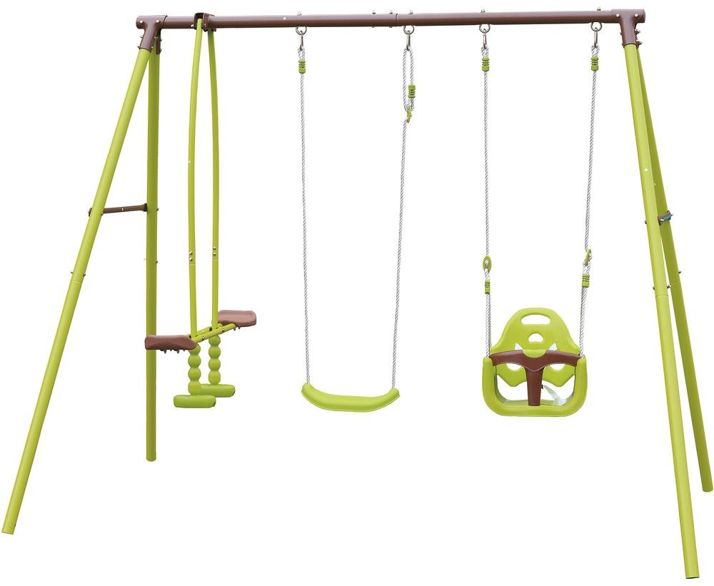 Masivní houpačka s kompletní kovovou konstrukcí je zárukou dlouhodobé životností s minimální údržbou. Nosnost houpačky je až 170 kg. Houpací prvky jsou uchyceny bezpečnostními karabinami, pro jednoduší a rychlejší výměnu.