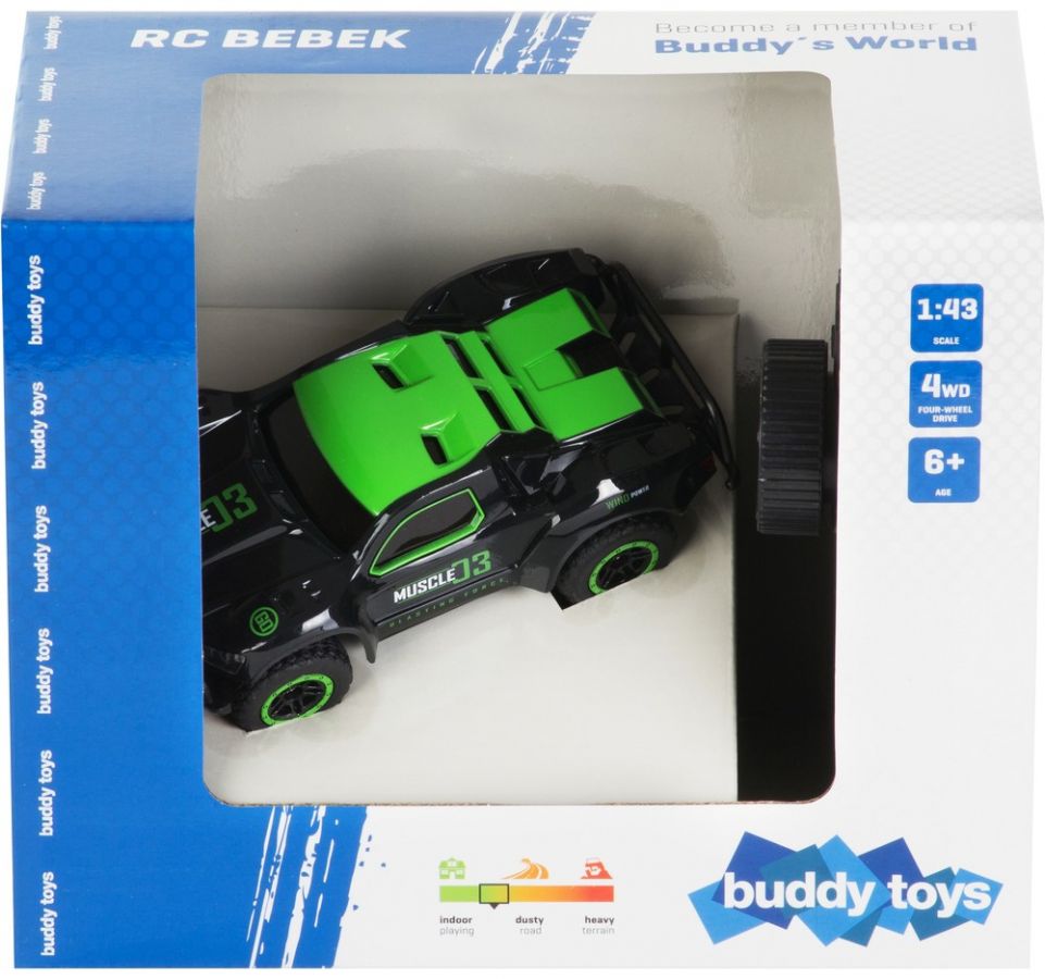 Autíčko na dálkové ovládání s náhonem na všechna čtyři kola je vhodné do mírného terénu, jako je zámková dlažba, asfaltová cesta. Autíčko je vybaveno gumovými kolečky, které zajistí lepší jízdní vlastnosti, dále pak funkčními předními světly. Rychlost modelu je se pohybuje od 8 km/h do 12 km/h v závislosti na stáří a výkonu baterií. Autíčko se ovládá pomocí pistolového ovladače s dosahem 20 metrů. Balení obsahuje návod v českém jazyce, autíčko a pistolový ovladač.