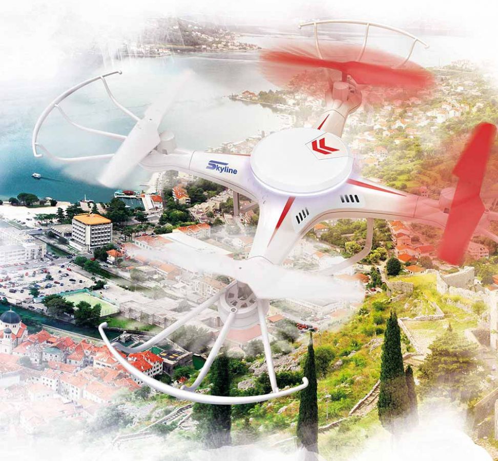 Dron s kamareou je středně velký letoun s vynikajícími letovými vlastnostmi. Svojí velikostí je dostatečně, aby mohl létat i venku. Pro lepší orientaci v prostoru je vybaven zelenými a červenými LED diodami. Dron pomocí tlačítka FLIP dokáže dělat základní akrobatické kousky. Doba letu se pohybuje od 6 do 7 minut, plné nabití pomocí síťového kabelu trvá 120 minut. Ovládá se vysílačem pracujícím na frekvenci 2,4 GHz s dosahem až 50 metrů. To vše dělá z tohoto stroje zábavnou věcičku jak pro děti tak i dospělé. Balení obsahuje návod v českém jazyce, dron, ovladač, kameru, SD mikro kartu, čtečku SD karet, nabíjecí kabel a náhradní sadu vrtulí.
