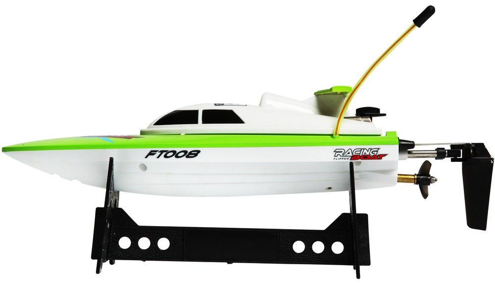 S touto lodí si můžeš hrát v bazénu nebo na malém rybníku. Je kvalitně zpracován, elekroniku a vzduchem chlazený motor chrání vodotěsné pouzro. Loď můžeš rozjet až na 14 km/h, dosah vysílačky je 25 metrů. Velikost lodě je 28 cm. Pokud se ti stane že se loď ve vodě převrátí, nemusíš pro ní plat, loď je vybavena funkcí auto-obrat, který loď otočí zpět kýlem dolů.