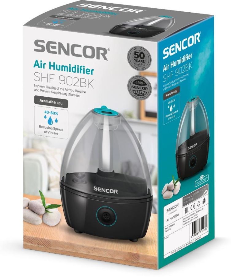 Ultrazvukový zvlhčovač vzduchu od Sencor SHF 902BK zajistí zdravé ovzduší v každém interiéru. Zajistím vám zdravé a pročištěné prostředí v interiéru, protože mne Sencor zkonstruoval jako ultrazvukový zvlhčovač SHF 902BK. Hlavní devízou je má technologie na principu vysokofrekvenčního ultrazvukového oscilátoru, která přeměňuje suchý a dráždivý vzduch na optimálně provlhčený. Tím také dávám sbohem virům a zdravotním potížím s nimi spojeným. Nejlepších výsledků dosahuji v místnostech o velikosti do 18 m2.