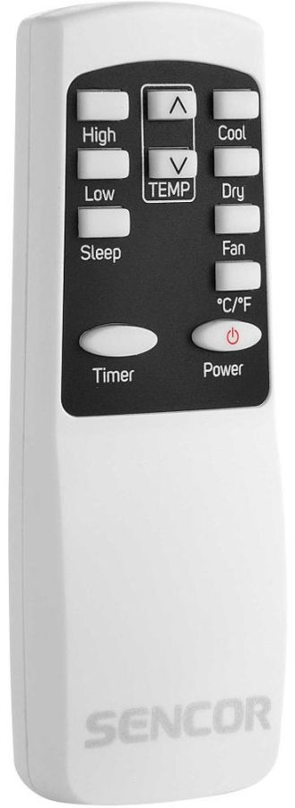 Příslušenství: Tělo mobilní klimatizace včetně filtrů vzduchového vstupu a výstupu, Přívodní kabel, Dálkové ovládání s LCD displejem