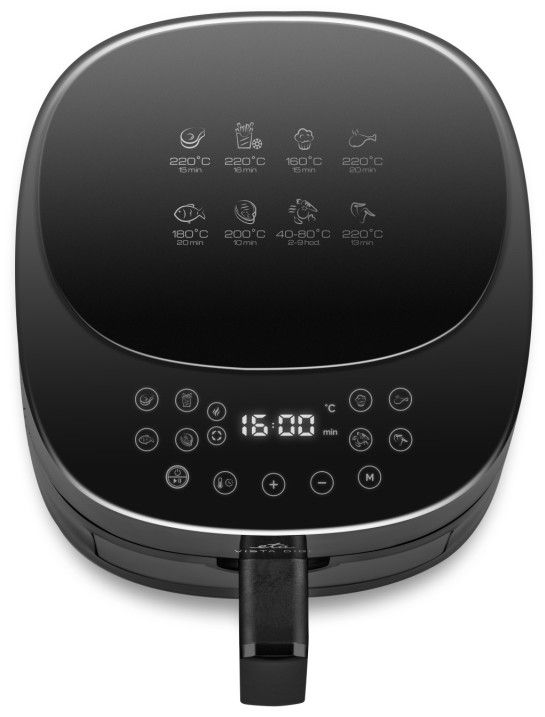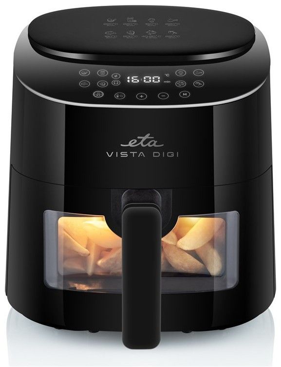 Připravte si oblíbená smažená i nesmažená jídla s ve zdravější verzi, s minimem přidaného tuku! Horkovzdušná fritéza ETA Vista Digi smaží jídlo pomocí horkého vzduchu, který proudí rovnoměrně uvnitř fritézy. Výsledkem jsou pak rovnoměrně usmažené řízky, hranolky, krokety i zeleninový falafel.