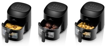 Horkovzdušná fritéza zajišťuje systém fritování bez použití oleje. Objem fritovacího koše 4,3 l.
