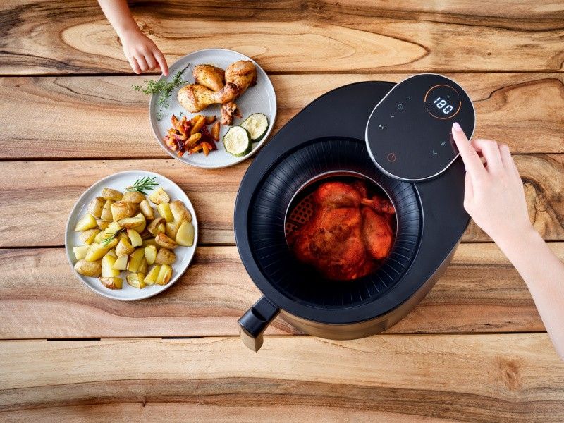 Teplotu si navíc můžete plynule nastavit od 80 do 200 °C a časovač až na 60 minut zajistí, že se nic nepřipálí. Moderní dotykové ovládání s LED displejem je intuitivní a přehledné, takže budete mít vždy dokonalý přehled o nastaveném režimu, teplotě a času přípravy.