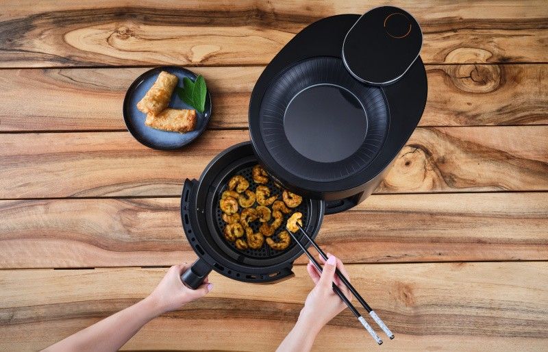 Navíc, infračervené topné těleso osvětluje vnitřní prostor, což ve spojení s průhledným horním krytem umožňuje pohodlnou kontrolu nad přípravou vašeho jídla, aniž byste museli fritézu otevírat a ztrácet cenné teplo.