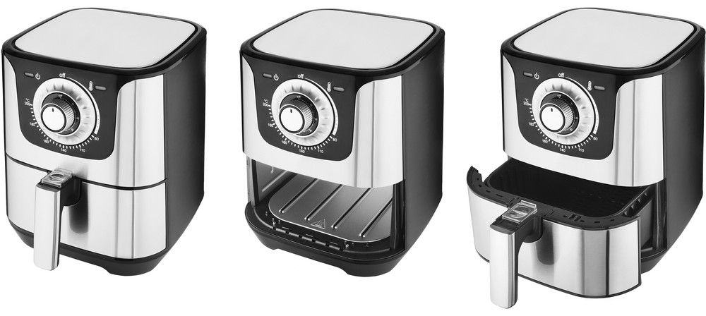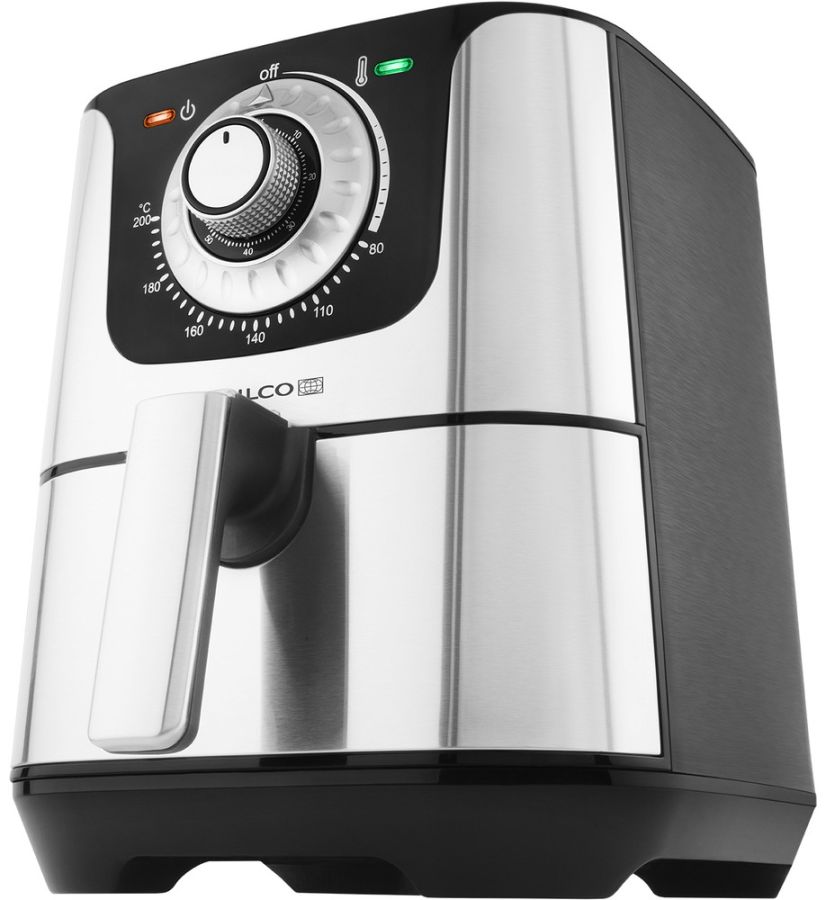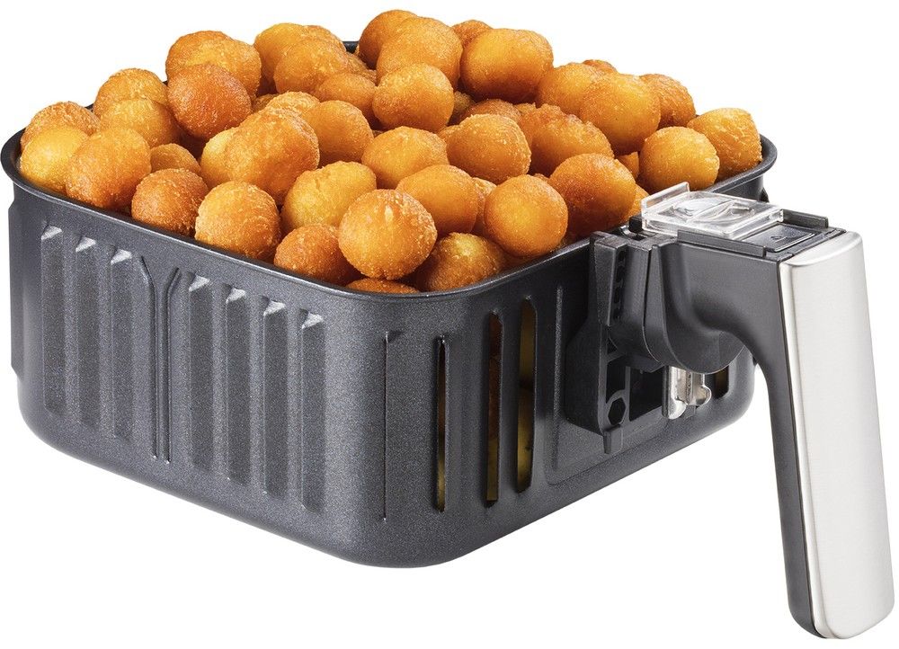 Horkovzdušná fritéza zajišťuje systém fritování bez použití oleje. Objem nádoby 3,5 l.