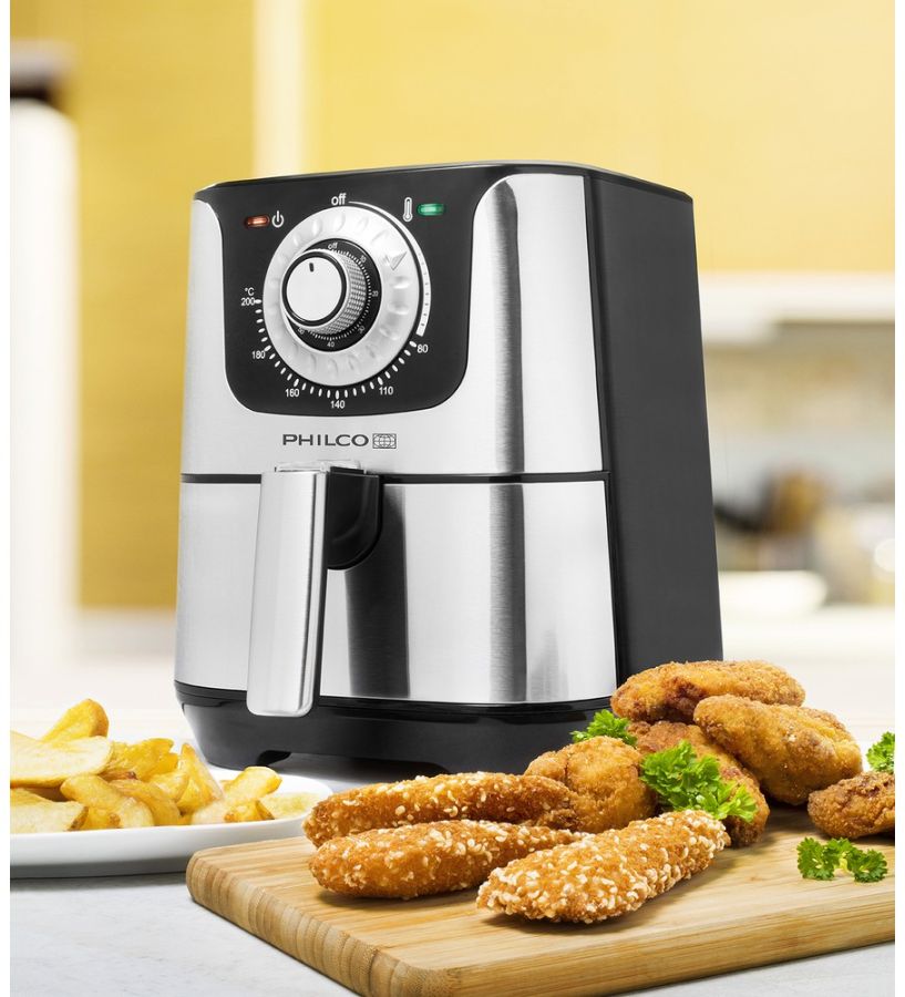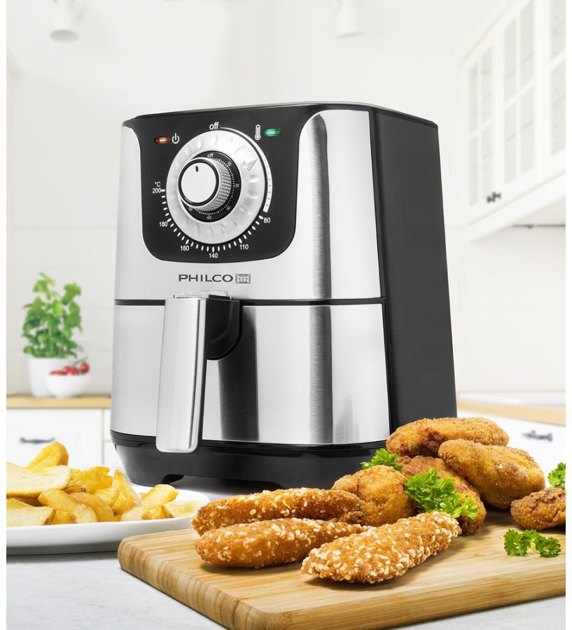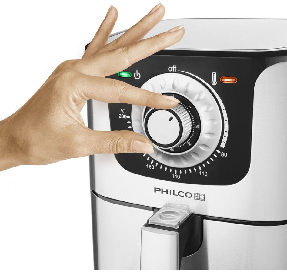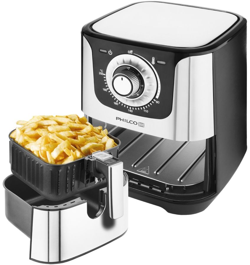 Jídlo připravované v horkovzdušné fritéze Philco PHAF 3500 obsahuje až o 85 % méně tuku než tradičně smažené jídlo a to bez ztráty delikátní chuti a křupavosti. Cyklonový ohřev připraví váš pokrm mnohem rychleji než v troubě a s minimálním množstvím oleje.