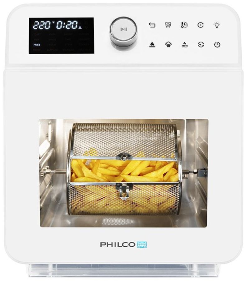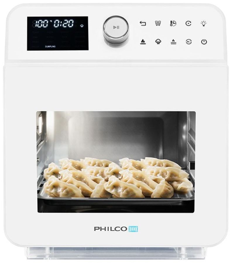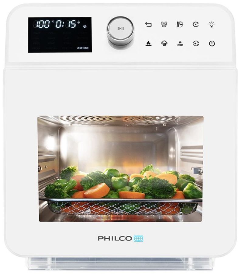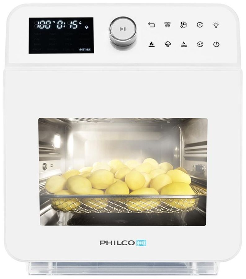 Horkovzdušná fritéza Philco PHAO 1115 W v bílé barvě s funkcí páry pro dokonalou přípravu mnoha různých receptů. Chytře kombinuje režimy vaření, abyste vždy dosáhli perfektního výsledku – na povrchu křupavé, uvnitř šťavnaté.