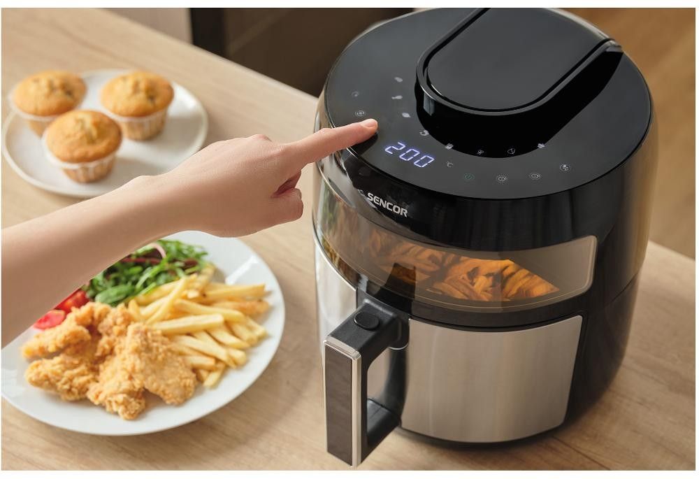 Horkovzdušná fritéza je opatřena 8 programy v podobě steaků, kuřecích stehen, ryb, krevet, hranolek a zeleniny. Výjimkou není ani režim sušení a pečení. K dokonalým výsledkům napomáhá propracovaná regulace teploty s nastavením od 80 °C do 200 °C.