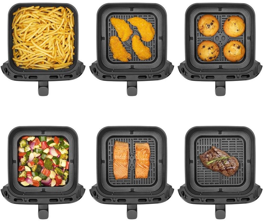 - 12 přednastavených programů - Air Fry, Grill, Fries, Roast, Shrimp, Fish, Vegetables, Steak, Broil, Chicken, Bake & Reheat