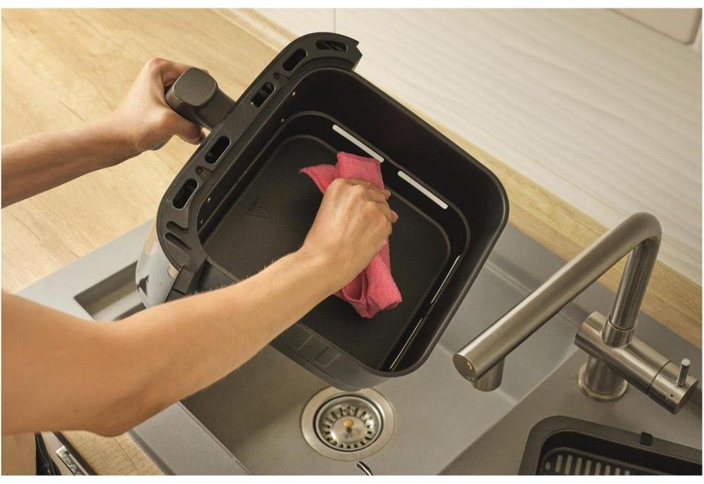 - Méně zápachu - Vyjímatelná mřížka fritovacího koše s nepřilnavým povrchem pro snadné čištění